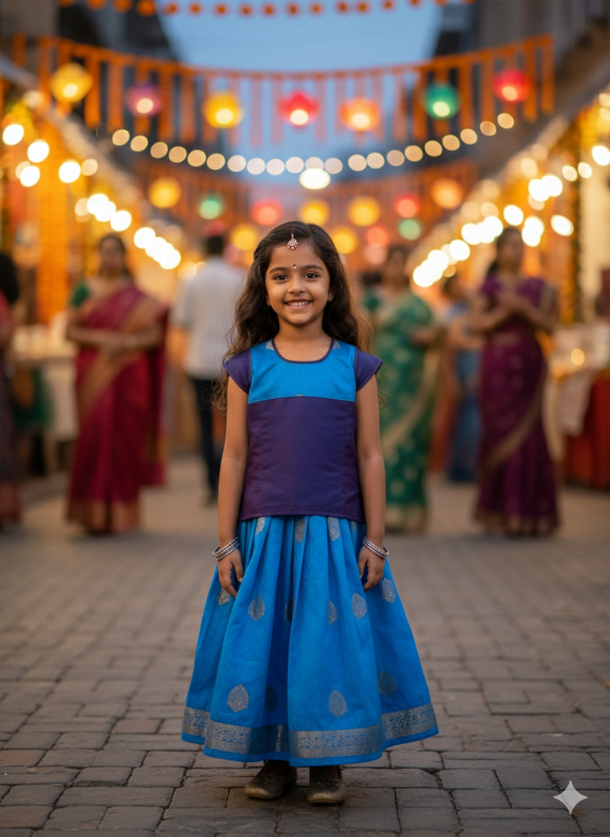 Art Silk Pattu Pavadai / Skirt in Blue Shades - 2 yrs