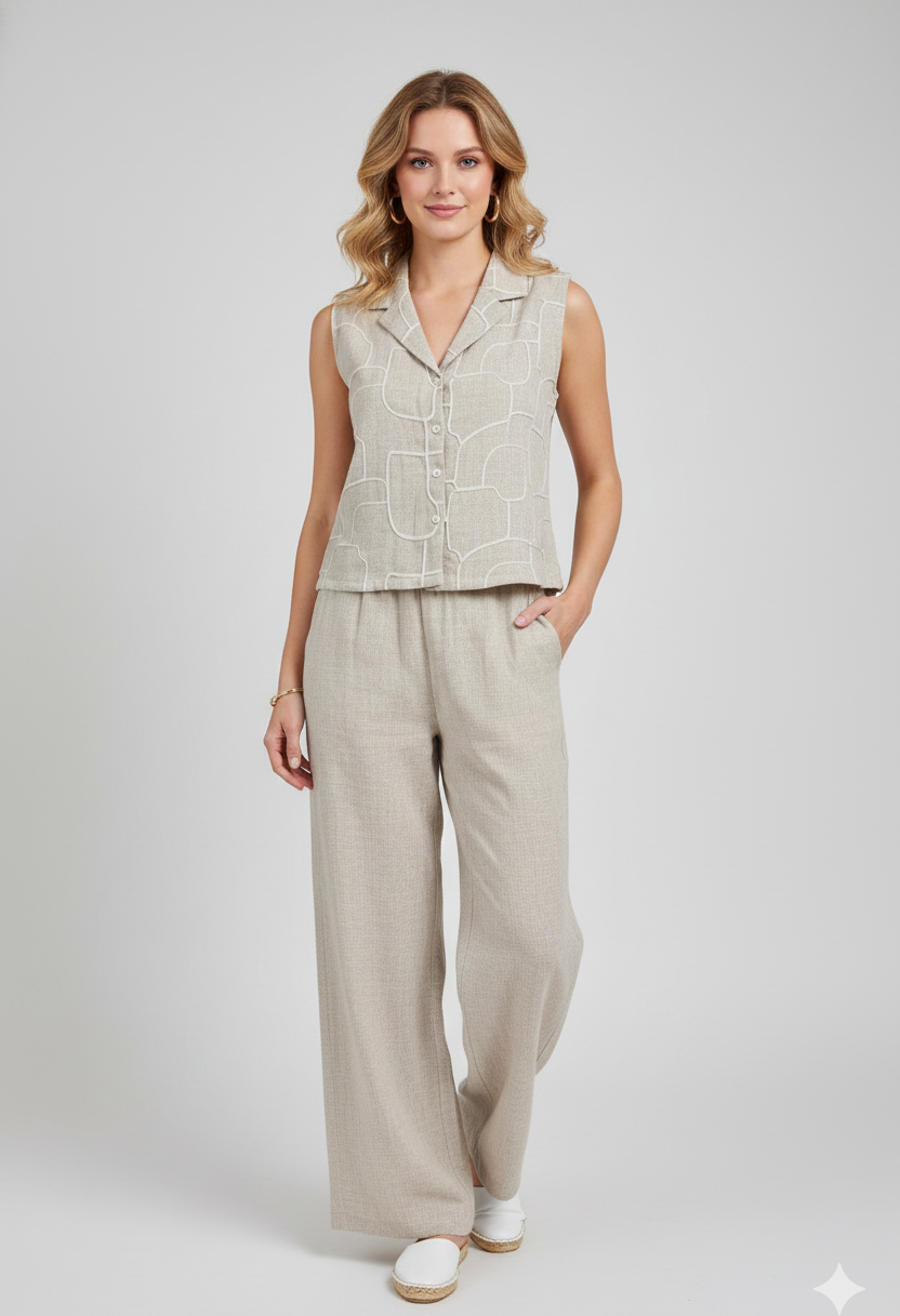 Beige Sleeveless Co-ord Set