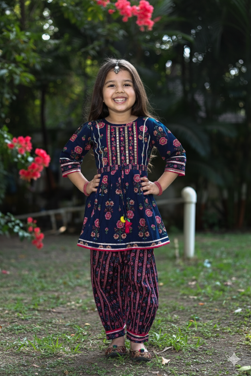 Girls Ethnic Wear - Blue and Pink Kurta Set