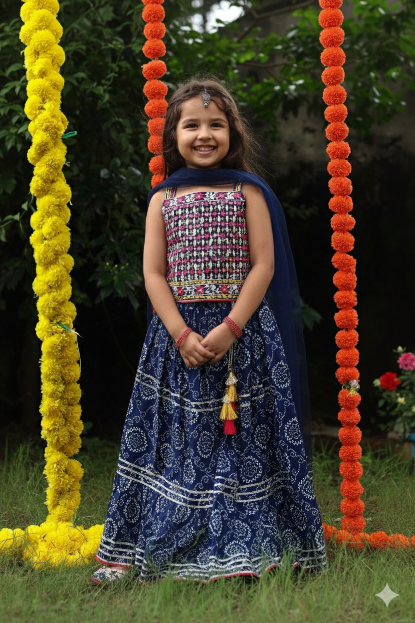 Girls Ethnic Wear - Blue Lehenga Choli Set
