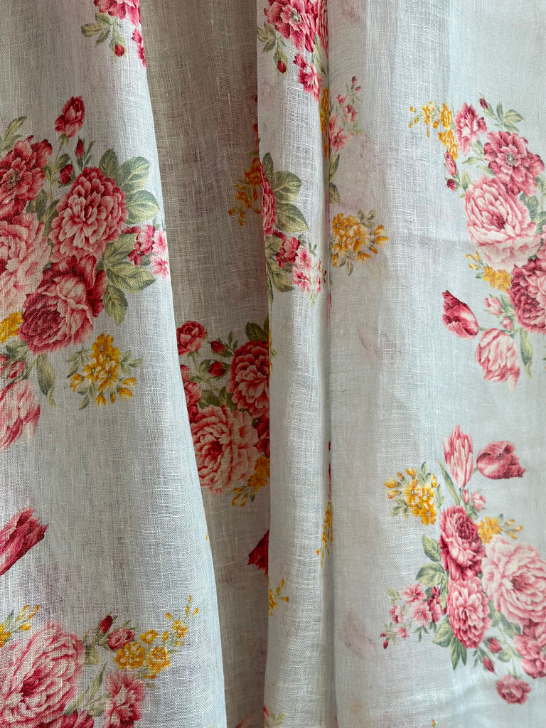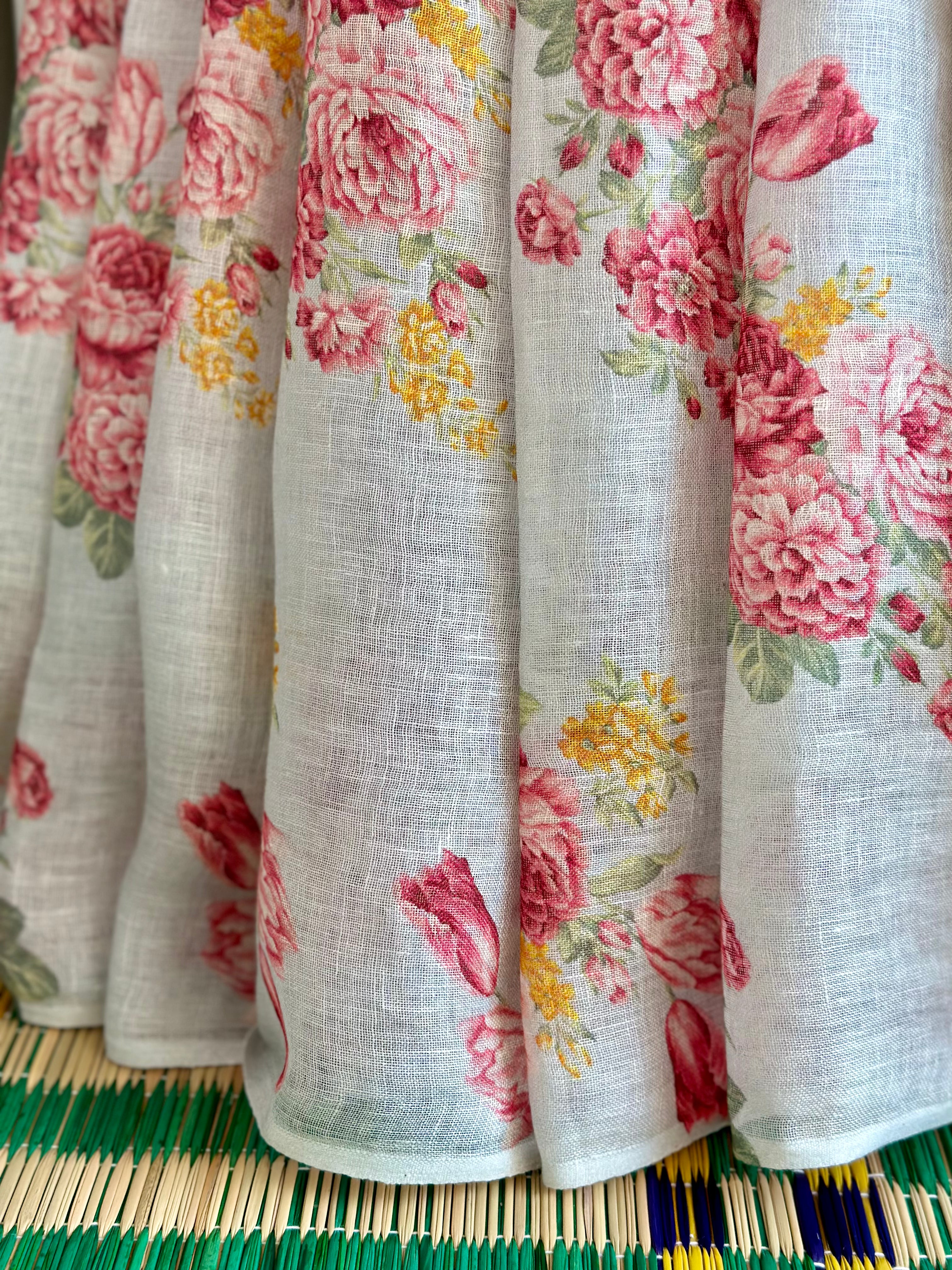 Floral designs and floral prints can never go out of style. We would like to present our floral design Digitally printed linen sarees with the most youthful, beautiful colours and high quality linen fabric. The saree is paired with an unstitched blouse fabric(last image).